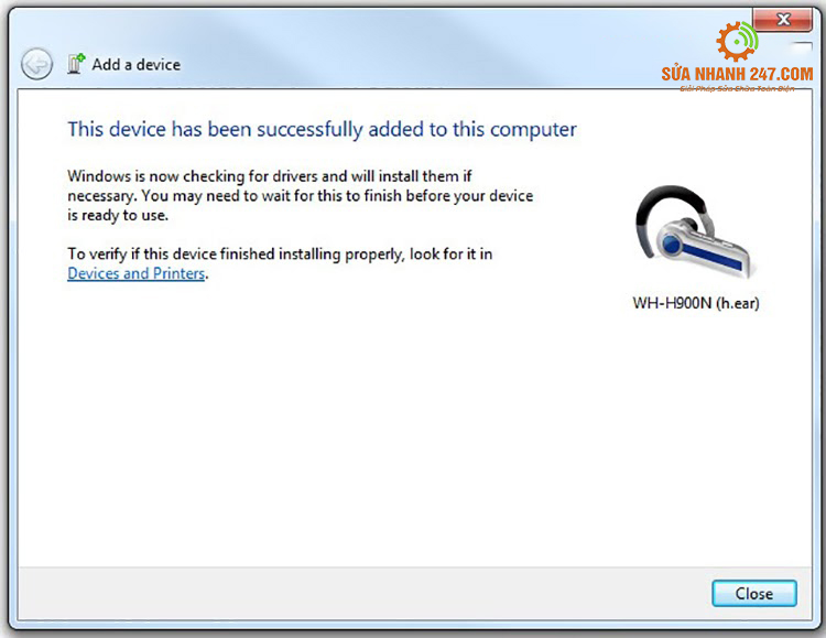 Sau khi kết nối xong, chọn Close để hoàn tất