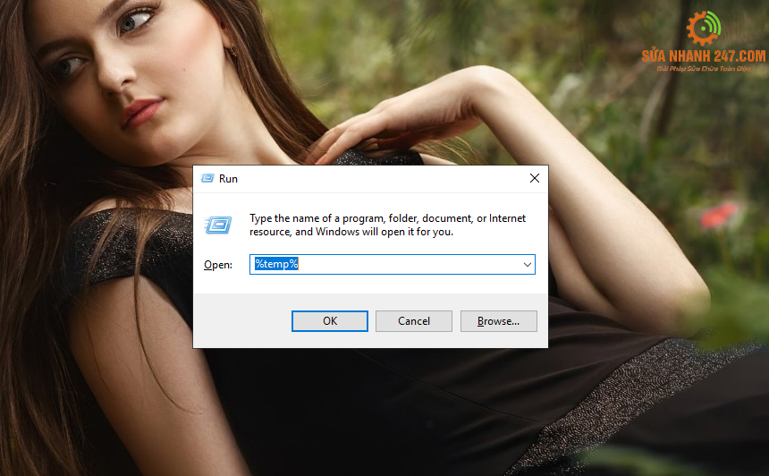 Bước 1:  Đầu tiên, bạn nhấn tổ hợp phím Windows+R và nhập lệnh %temp% rồi nhấn Enter.