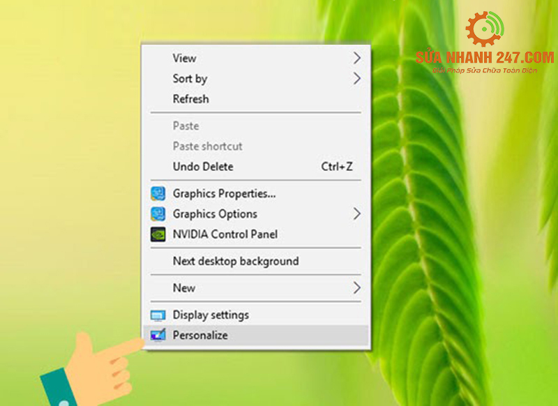 Bước 1: Để tắt hiệu ứng, đầu tiên bạn nhấn chuột phải vào màn hình, chọn Personalize.
