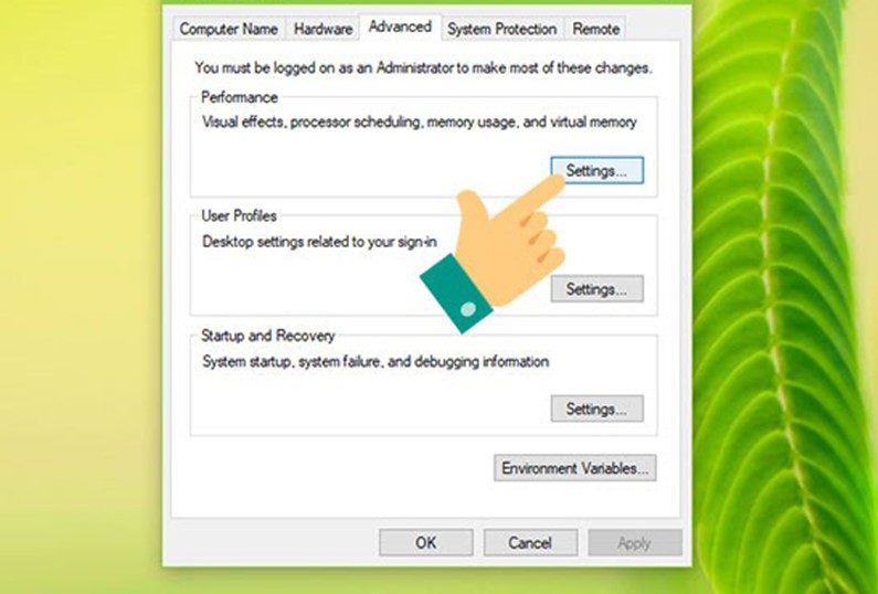 Chọn Setting của phần Performance