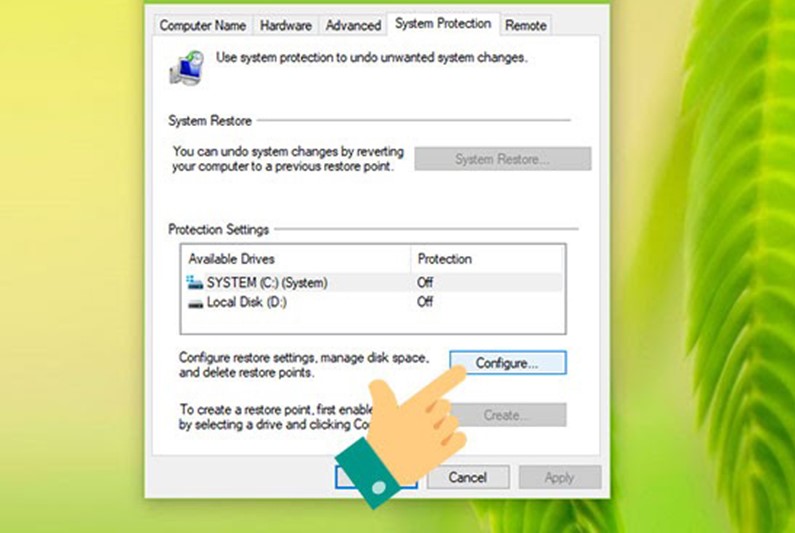 Vào Tab System Protection và chọn Configure