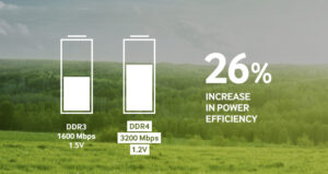 Ngoài nhu cầu hiệu năng cao, người dùng máy tính luôn mong muốn có thể tăng thời gian sử dụng Pin trên Laptop để có thể làm được nhiều việc hơn. Ram Laptop Samsung DDR4 tiêu thụ điện năng cực thấp thấp. Điều này cho phép kéo dài tuổi thọ pin cho máy tính xách tay trong khi vẫn duy trì hiệu năng cao. Ram Laptop Samsung DDR4 tiêu thụ ít năng lượng hơn với công nghệ độc quyền 2xnm của Samsung. Ram Laptop Samsung DDR4 2xnm của Samsung hoạt động ở điện thế 1.2V đạt được hiệu suất / công suất cao hơn khoảng 26% so với DDR3 2xnm hoạt động ở mức 1,5V. Samsung cũng cung cấp hoạt động 2xnm LPDDR4 ở tốc độ 1.1V, đạt được hiệu quả năng lượng lên 37% so với LPDDR2 2xnm hoạt động ở mức 1.2V.